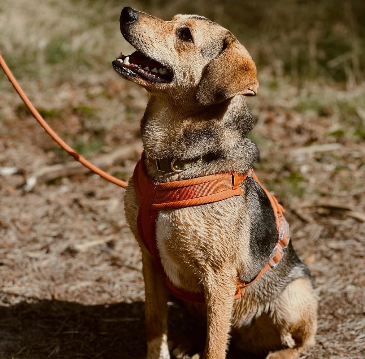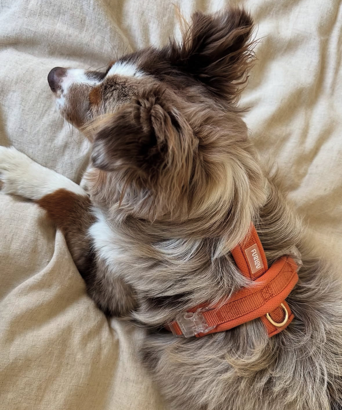 This harness is all about giving your dog that just-right fit with the comfort they deserve. Padded with breathable fabric and adjustable in four places, it wraps gently without restricting movement. The Y-shape keeps pressure off the neck, and the gold hardware adds a little glam to every walk.